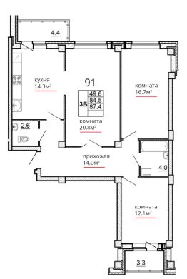 Продается 3-комнатная квартира, 87.40 кв. м, по адресу Россия, Псковская область, г. Псков, ул. Алёхина, 14. Этаж 2/16.