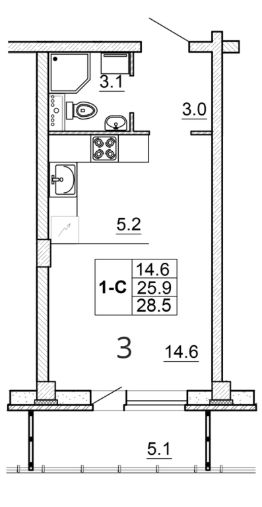 Продается студия, 28.50 кв. м, по адресу Россия, Псковская область, г. Псков, ул. Алёхина, 14. Этаж 2/16.