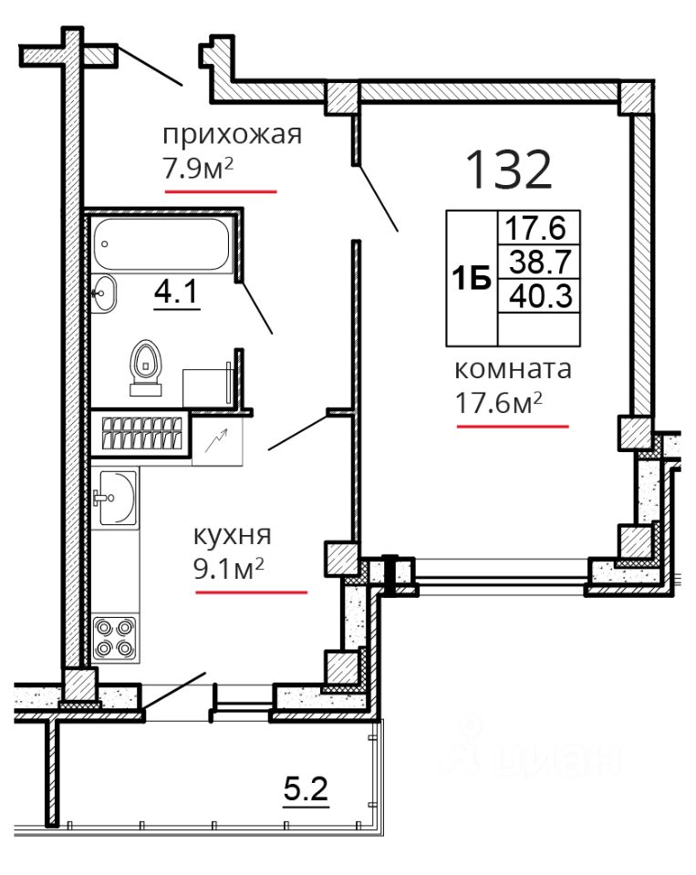 Продается 1-комнатная квартира, 40.30 кв. м, по адресу Россия, Псковская область, г. Псков, ул. Алёхина, 14. Этаж 10/16.