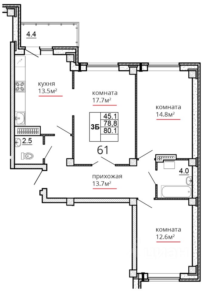 Продается 3-комнатная квартира, 80.10 кв. м, по адресу Россия, Псковская область, г. Псков, ул. Алёхина, 14. Этаж 12/16.