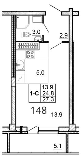 Продается студия, 27.30 кв. м, по адресу Россия, Псковская область, г. Псков, ул. Алёхина, 14. Этаж 13/16.