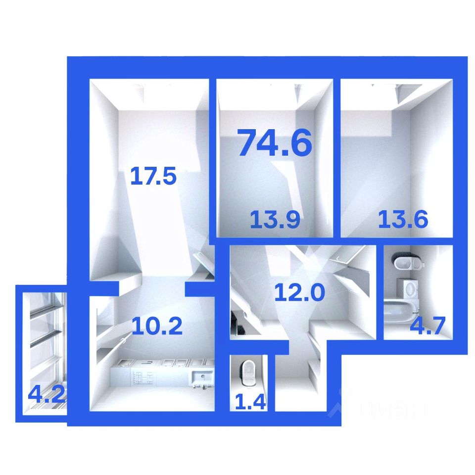 Продаётся 3-комнатная квартира в строящемся доме (Дом 3), срок сдачи: I-кв. 2028, общей площадью 74.6 кв.м., на 8 этаже. Расположение, транспортная доступность