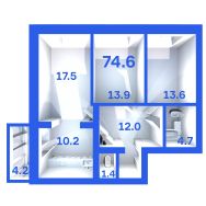 Продаётся 3-комнатная квартира в строящемся доме (Дом 3), срок сдачи: I-кв. 2028, общей площадью 74.6 кв.м., на 9 этаже. Расположение, транспортная доступность