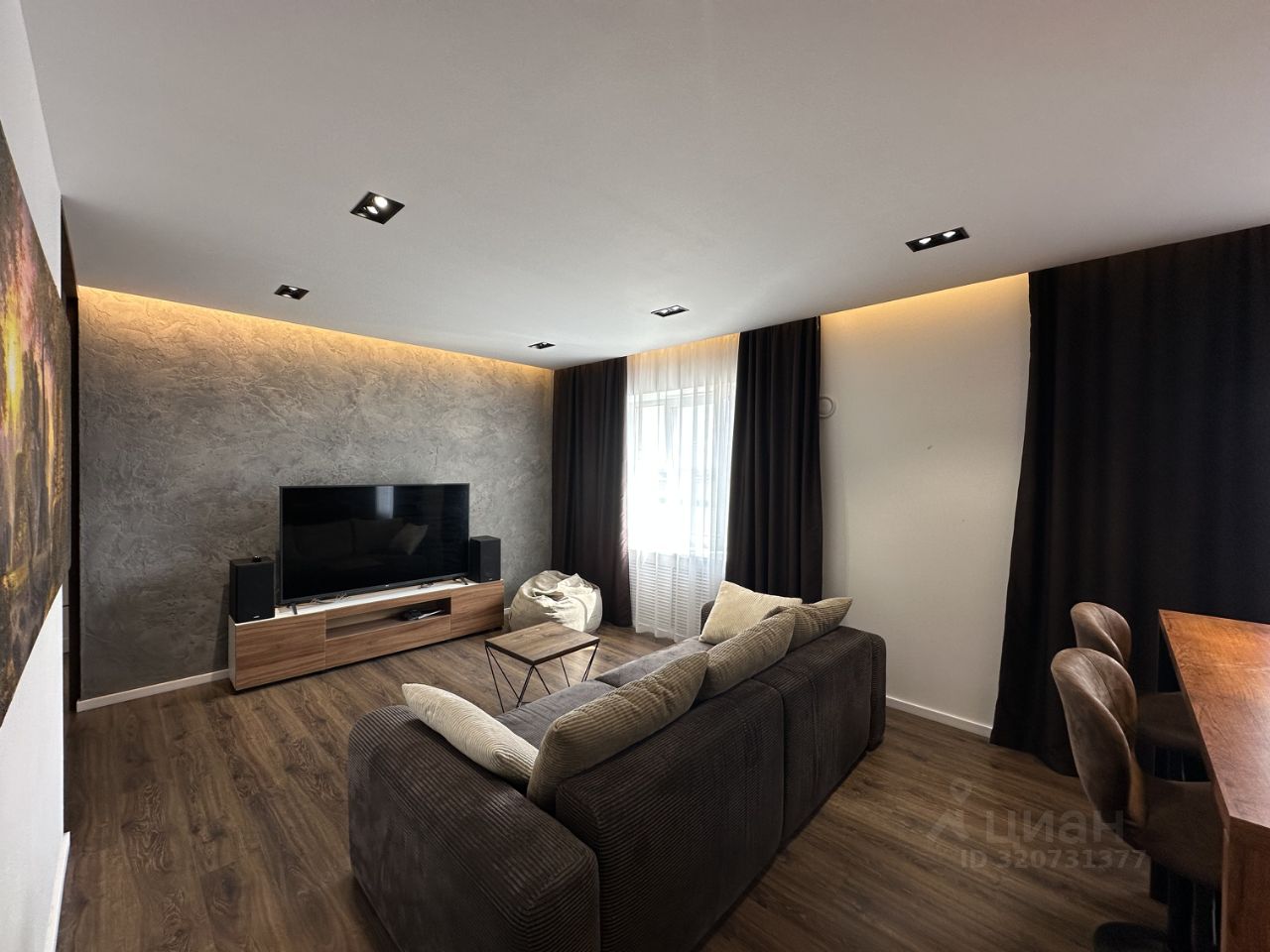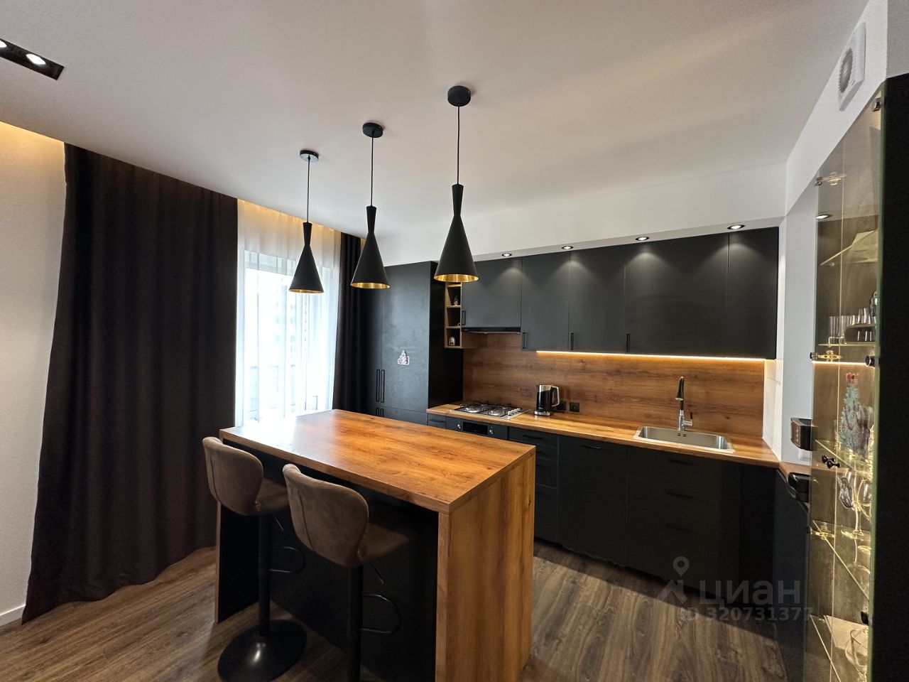 кухня-гостиная с встроенной техникой, кухонным островом и зоной отдыха - готовак приёму дорогих гостей! А уютная спальная комната - для счастливых владельцев!