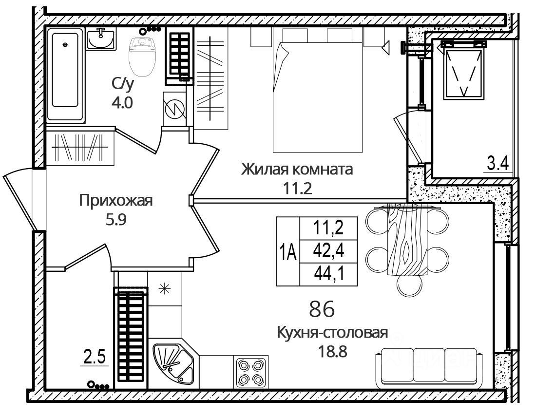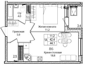 Продается 1-комнатная квартира, 44.10 кв. м, по адресу Россия, Псковская область, г. Псков, ул. Дмитрия Яковлева, 6. Этаж 13/16.