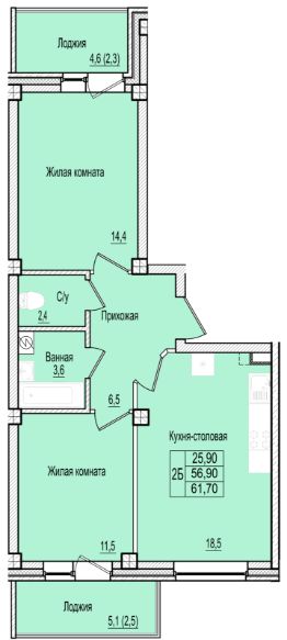 Общая площадь61,7 м²