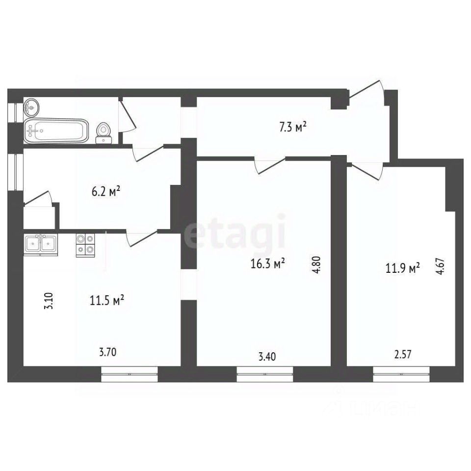 • Кухня: 11,2 м² — здесь реально можно танцевать, а не только готовить.