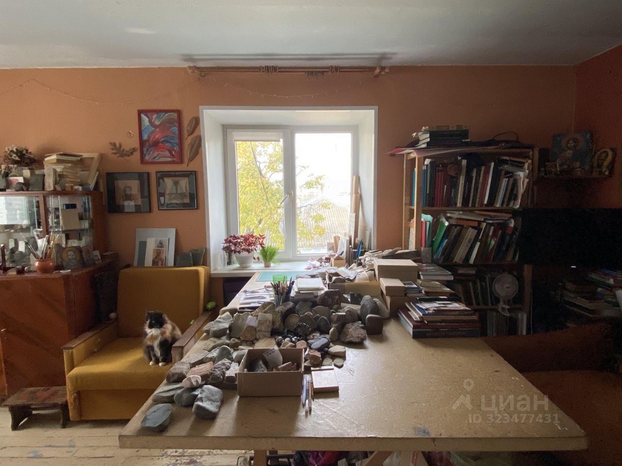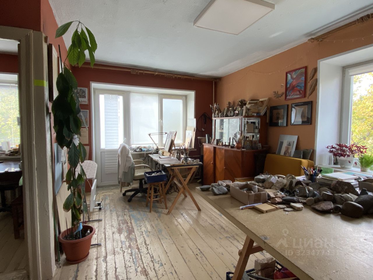 В комнате два окна (под обоими радиоторы), что позволяет при желании сделать зонирование на две отдельные комнаты.