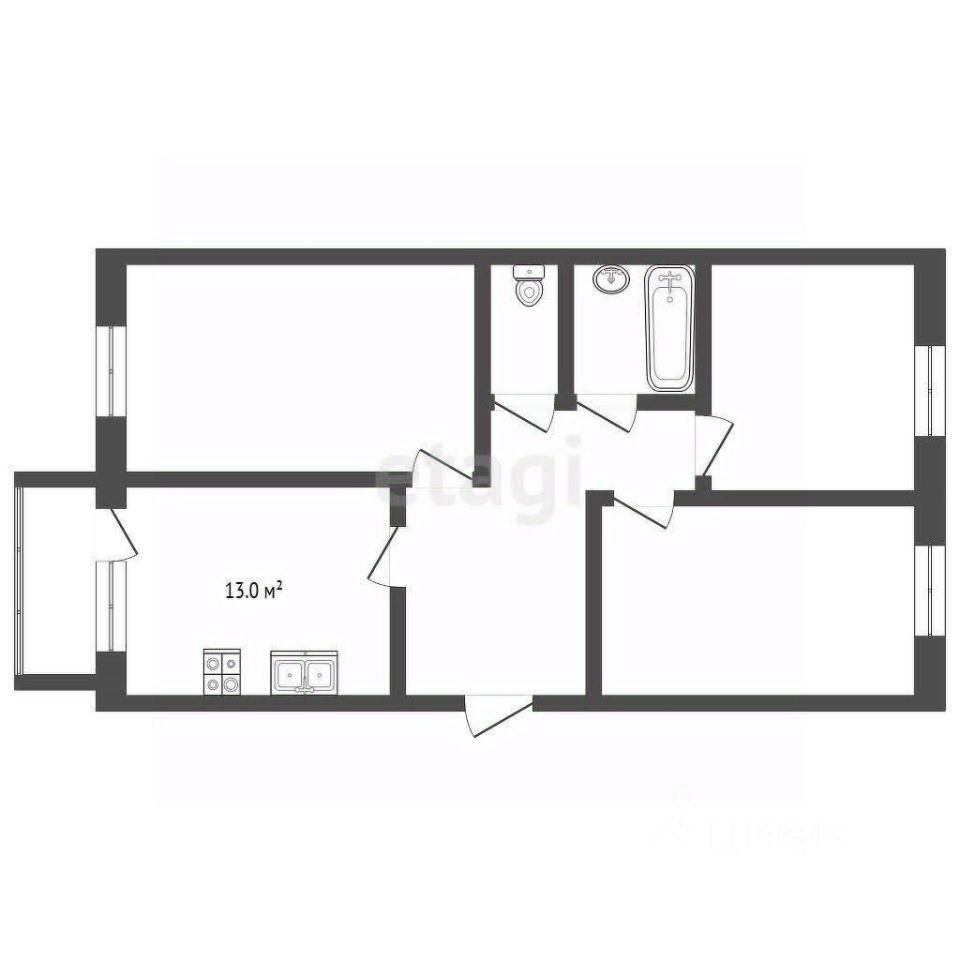 Комнаты изолированные (20 м² /19м²/ 14м²) — идеально для семьи или совместного проживания.Просторная кухня — 13 м², раздельный санузел. Высота потолков — 2,5 м,