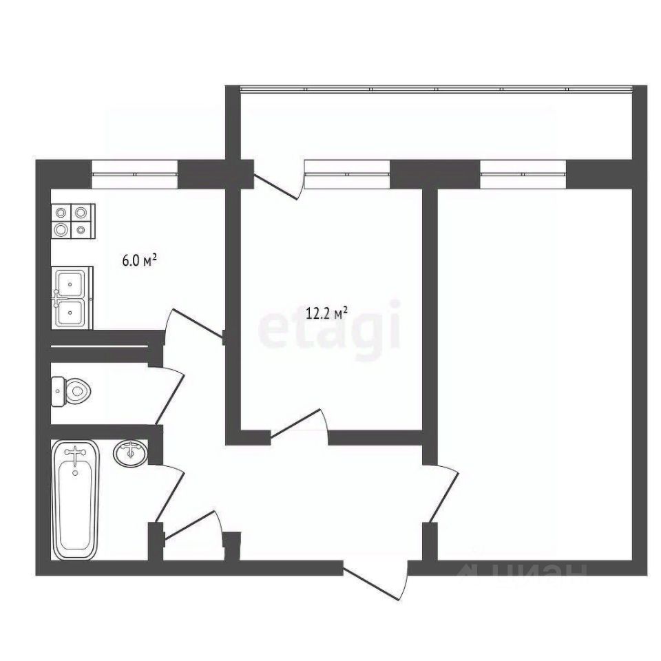 Комнаты изолированные (23,8 м² и 12,8 м²) — идеально для семьи или совместного проживания, кухня — 6 м², раздельный санузел,- плитка нового образца, душевая кабина, балкон застеклен пластиковыми окнами. Высота потолков — 2,5 м, Квартира требует косметического ремонта.