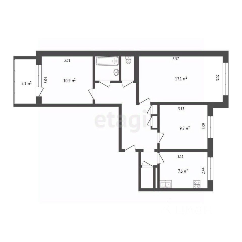 7,6 м²
