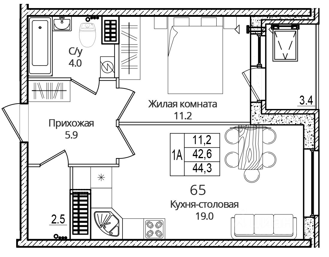 Продается 1-комнатная квартира, 44.30 кв. м, по адресу Россия, Псковская область, г. Псков, ул. Дмитрия Яковлева, 6. Этаж 10/16.