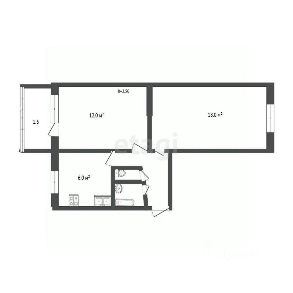 Планировка квартиры практична и предусматривает изолированные комнаты на две стороны площадью 18 и 12 кв.м , а также раздельный санузел. Кухня компактная, 6 кв.м. Состояние объекта хорошее: в комнате и на кухне уложен линолеум, поклеены обои, в санузле кафельная плитка, установлены современные межкомнатные двери. Квартира полностью меблирована и готова к заселению.