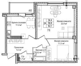 Продается 2-комнатная квартира, 62.10 кв. м, по адресу Россия, Псковская область, г. Псков, ул. Дмитрия Яковлева, 6. Этаж 12/16.