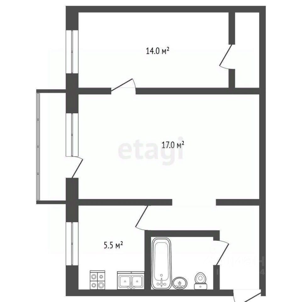 Просторная гостиная 17 м² с выходом на балкон.