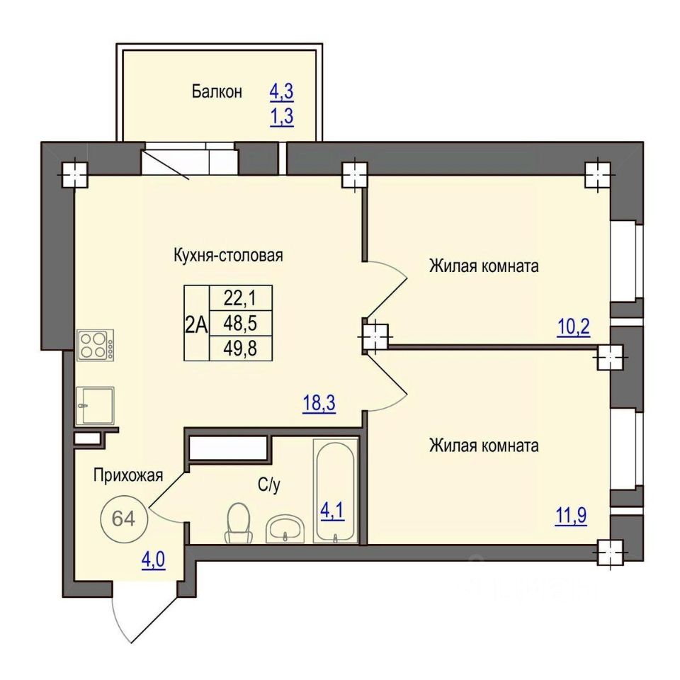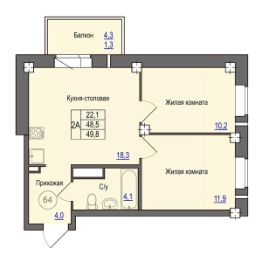 Общая площадь49,8 м²