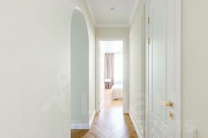 Напольное покрытие в прихожей и ванной-керамогранит, в комнатах ламинат (елочка), все стены покрашены, с декором из молдингов и потолочных плинтусов. Освещение зонированное состоит из люстр, точечных светильников, интерьерных бра и закарнизной подсветки. В ванной комбинированная плитка с подсветкой полок и скрытой сантехникой, предусмотрено теплый пол и установлена гребенка с фильтром грубой очистки для выравнивания давления в системе..