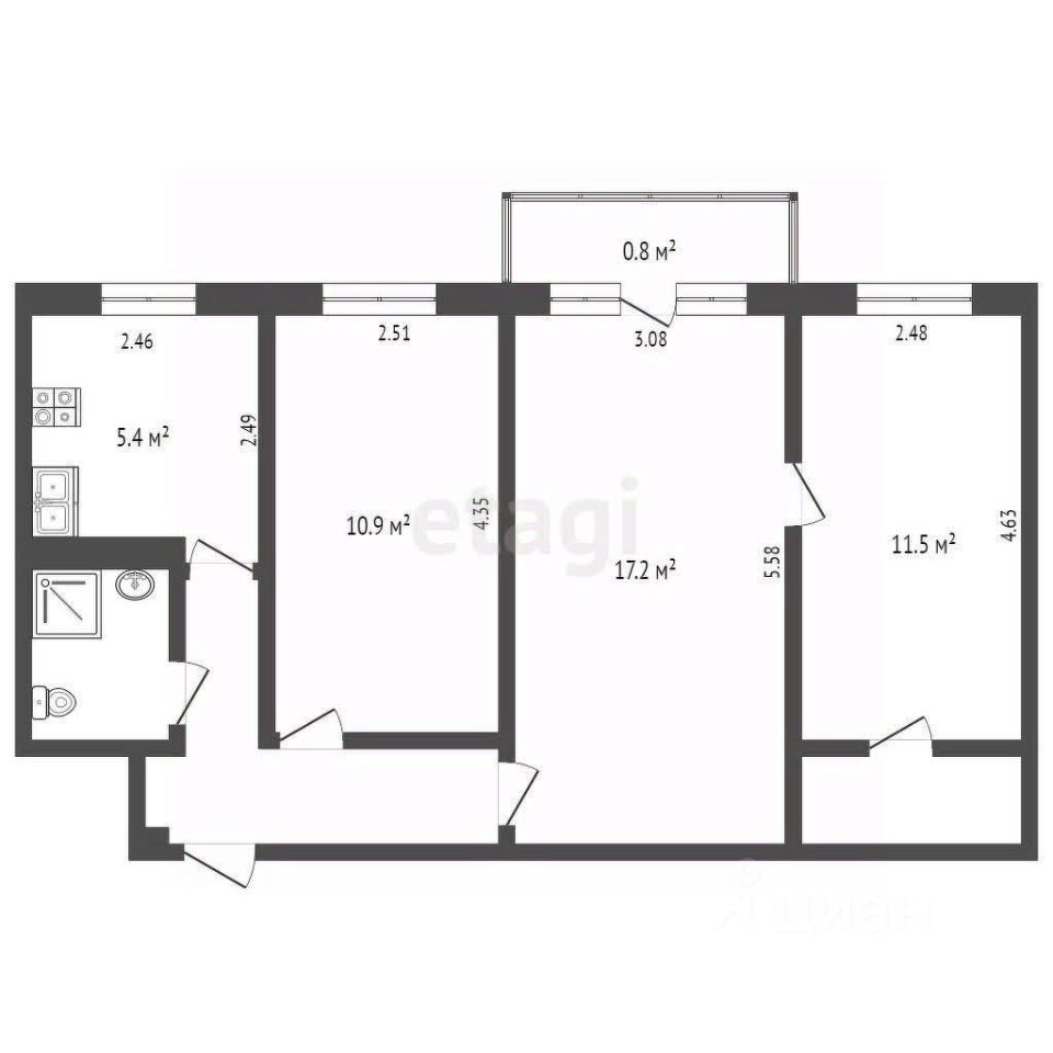 55,3 м²