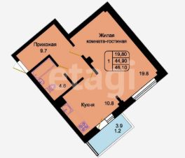Крупногабаритный формат: 45 кв.м. — это простор, который позволяет реализовать просторную еврооднушку с большой кухней-гостиной.