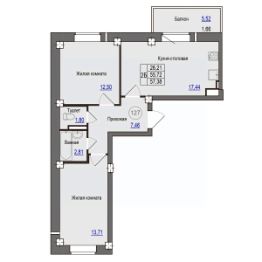 Продаётся 2-комнатная квартира в строящемся доме (поз. 13 (2 этап)), срок сдачи: IV-кв. 2028, общей площадью 57.38 кв.м., на 8 этаже. Новый жилой комплекс "Гармония" от застройщика "ГК Руст" расположен по адресу: Россия, Псковская область, Псковский район, Завеличенская волость, деревня Борисовичи, Венская улица