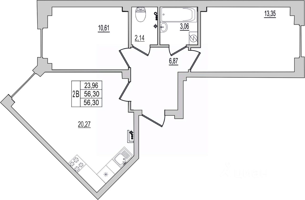 56,3 м²