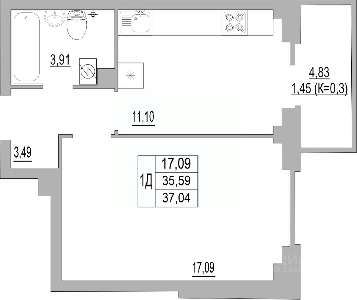 37,04 м²