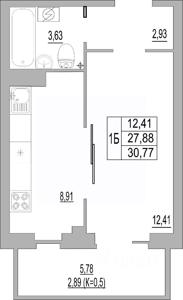 Общая площадь30,77 м²