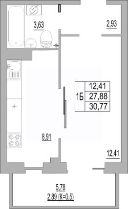 Продается 1-комн. квартира, 30,77 м²