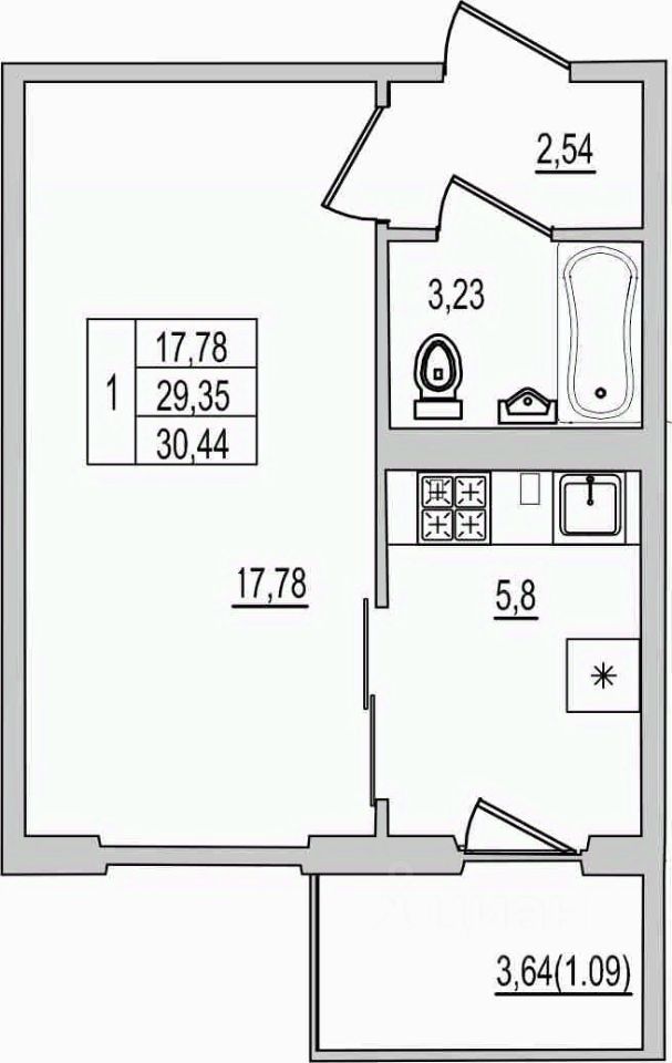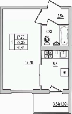 30,44 м²