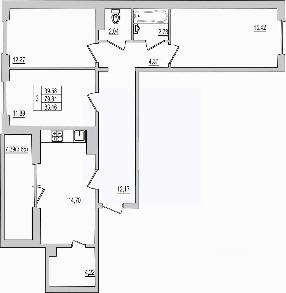 Продаётся 3-комнатная квартира в строящемся доме (Дом 94Д), срок сдачи: III-кв. 2027, общей площадью 83.46 кв.м., на 9 этаже. Новый жилой комплекс "Семь сезонов" от застройщика "ЛУГ"
