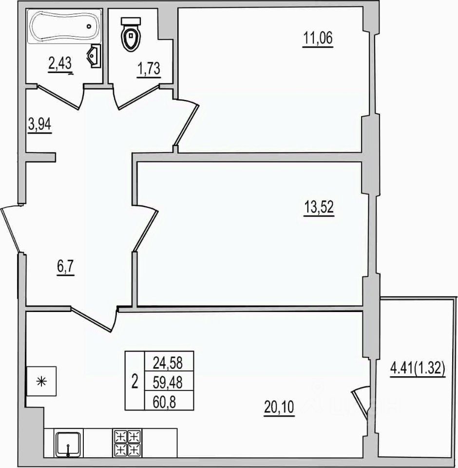 60,8 м²