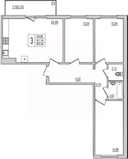Продаётся 3-комнатная квартира в строящемся доме (Дом 1), срок сдачи: IV-кв. 2026, общей площадью 83.34 кв.м., на 7 этаже. Новый жилой комплекс "Семь сезонов" от застройщика "ЛУГ"