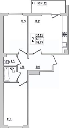 59,73 м²