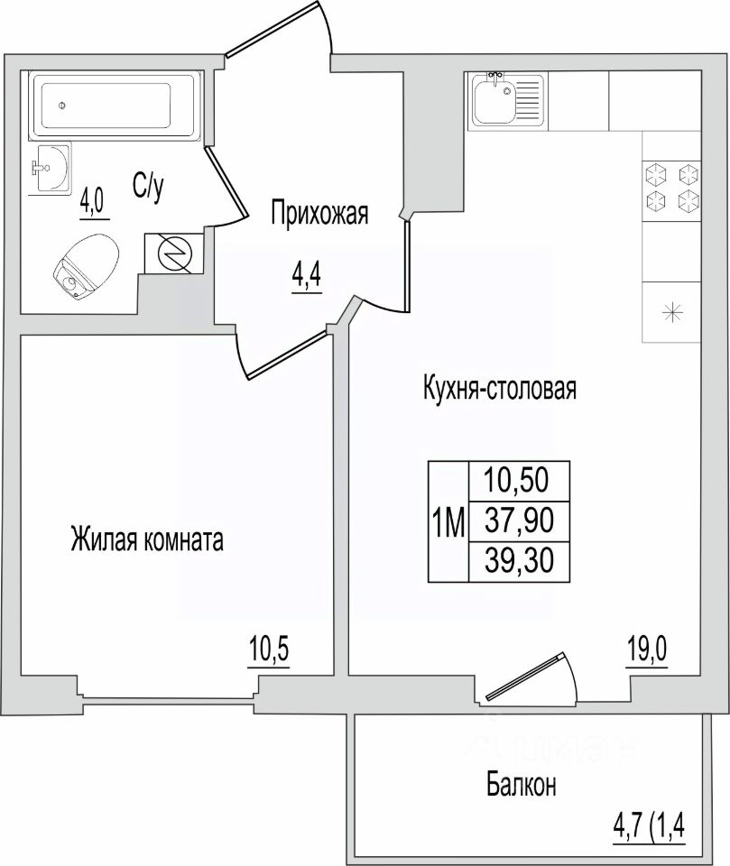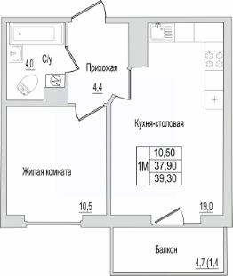 39,3 м²