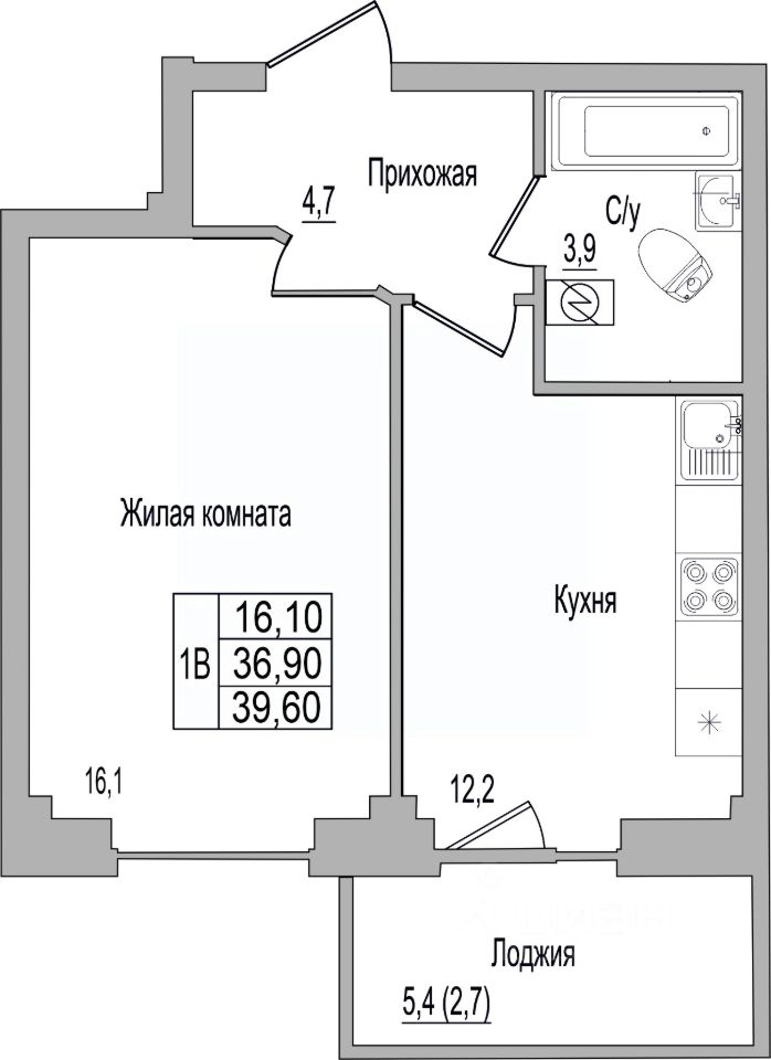 39,6 м²