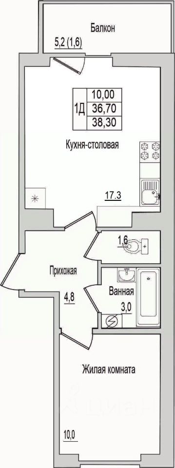 38,3 м²