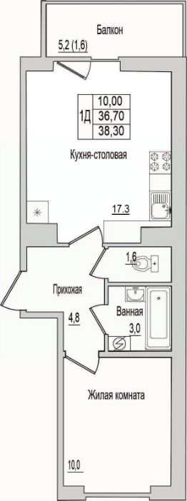 38,3 м²