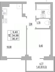 36,41 м²