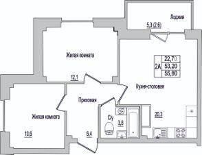 Продается 2-комнатная квартира 100 в строящемся доме по адресу ул. Героя России Досягаева, 4 в новом жилом комплексе "Семейный".
