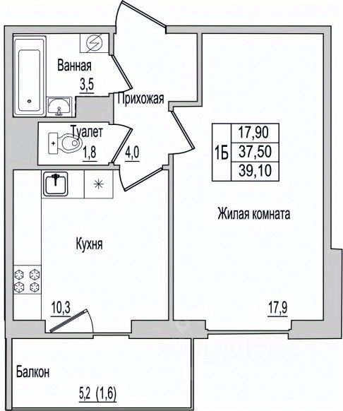 1. Умная планировка - удобная кухня, просторная комната и место для хранения.