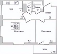 Продается 2-комнатная квартира 142 в строящемся доме по адресу Юности, 10.