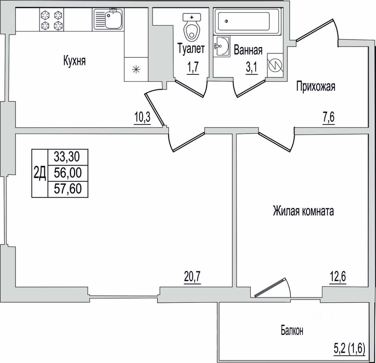 1. Умная планировка - удобная кухня, просторная комната и место для хранения.