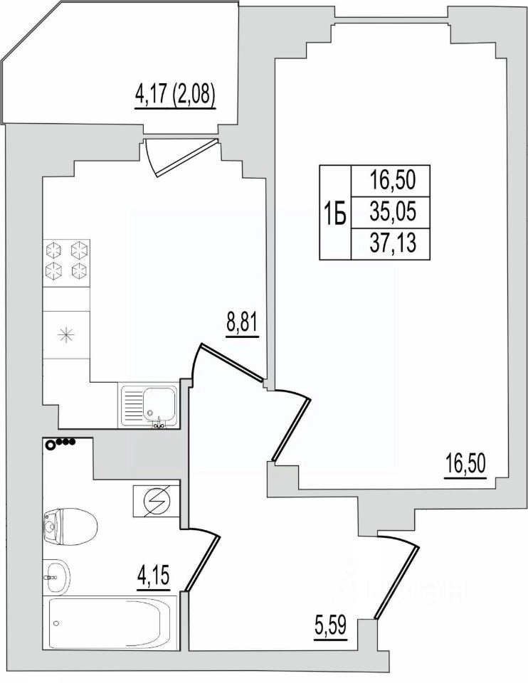 Общая площадь37,13 м²