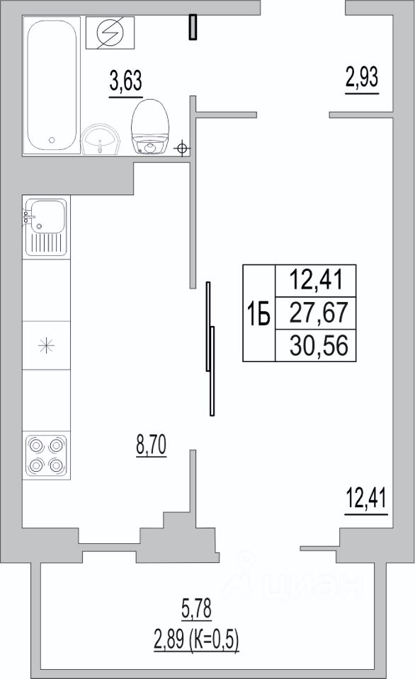 Продается 1-комнатная квартира 261 в готовой новостройке на ул. Юности, 32 (1 этап строительства).