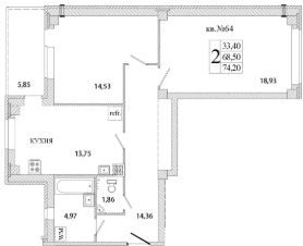 Продается 2-комнатная квартира, 74.30 кв. м, по адресу Россия, Псковская область, Писковичи, ул. Гецентова, 5. Этаж 1/9.