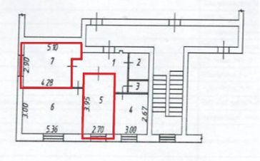 Площадь комнат: 10,6 м² + 13,2 м² (общая площадь квартиры — 61,1 м²)