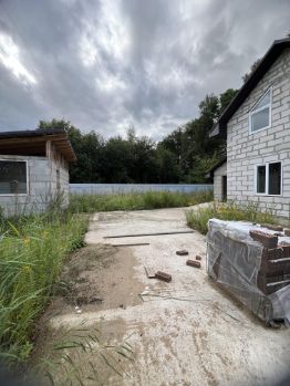 Участок подсыпан, огорожен забором из металлопрофиля на фундаменте. На участке также не достроенная баня.