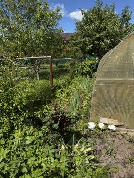 САД: 5 яблонь, 2 крупные плодоносящие вишни, сливы, калина, черная смородина (ранняя и поздняя), малина, клубника хорошего сорта