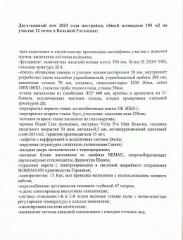 При строительстве дома использованы только дорогие и качественные современные материалы. Внутри сделана предчистовая отделка, заведены все коммуникации. Отопление двух этажей - теплые полы. Установлены энергосберегающие стеклопакеты.