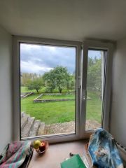 В квартире не законченный ремонт: заменена электропроводка, стеклопакеты на первом этаже, межкомнатные двери новые, выровнены стены. Необходимы только покраска стен или оклейка обоями.